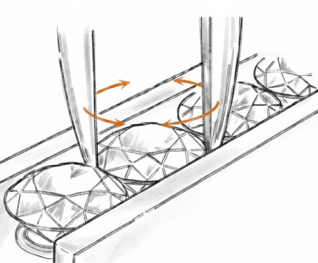Similar to the channel setting, the bar channel setting secures diamonds between vertical metal bars. This variation provides additional security and a distinct look, often used in modern and contemporary designs.